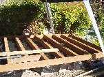 will weigh a few tons, the foundation is made with new pressure-treated 4 x 6 joists on 16" centers. Five concrete pier blocks support each 8' long