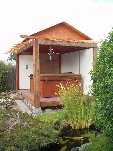 June 2004 - A Japanese bath house, or Onsen, was incorporated into the original design concept for the yard. The floating deck was to provide the