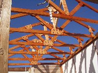 the trusses strength enough to support clay tile roofing. The screws are covered by 1" dowels cut in 1/2" sections and glued over the screw holes to