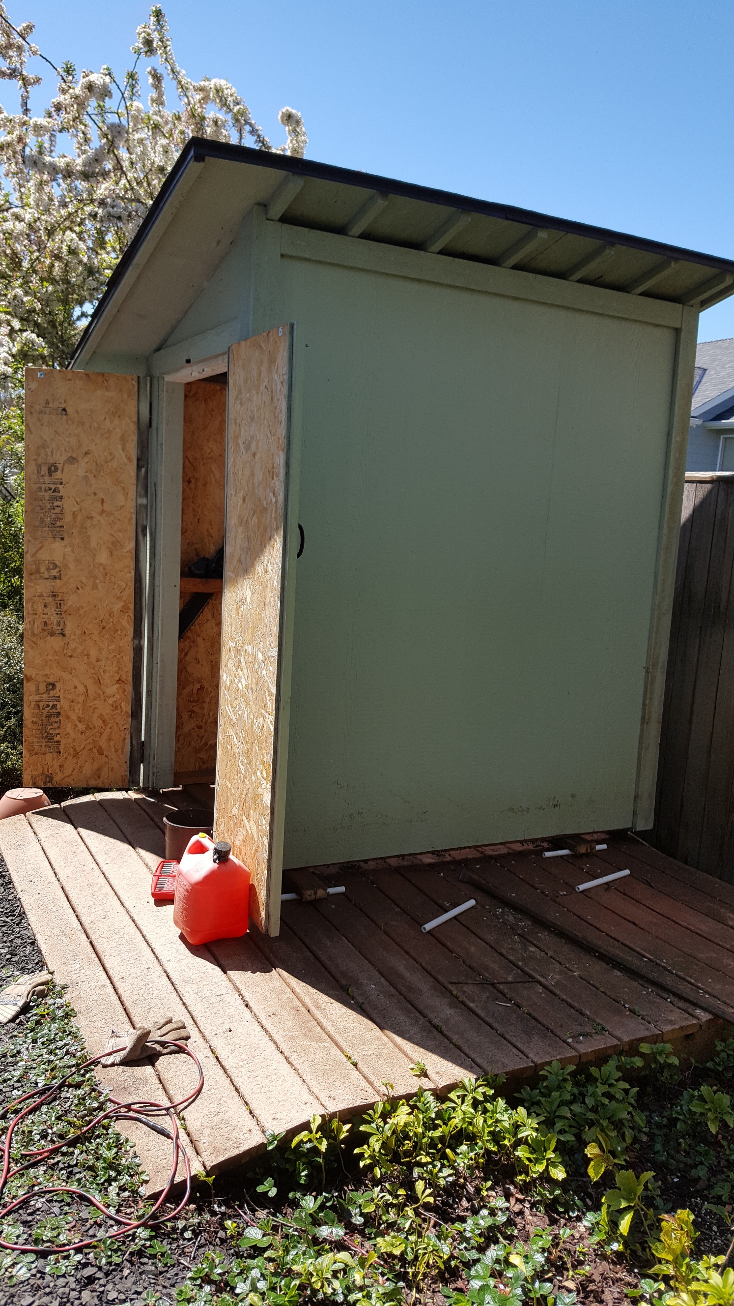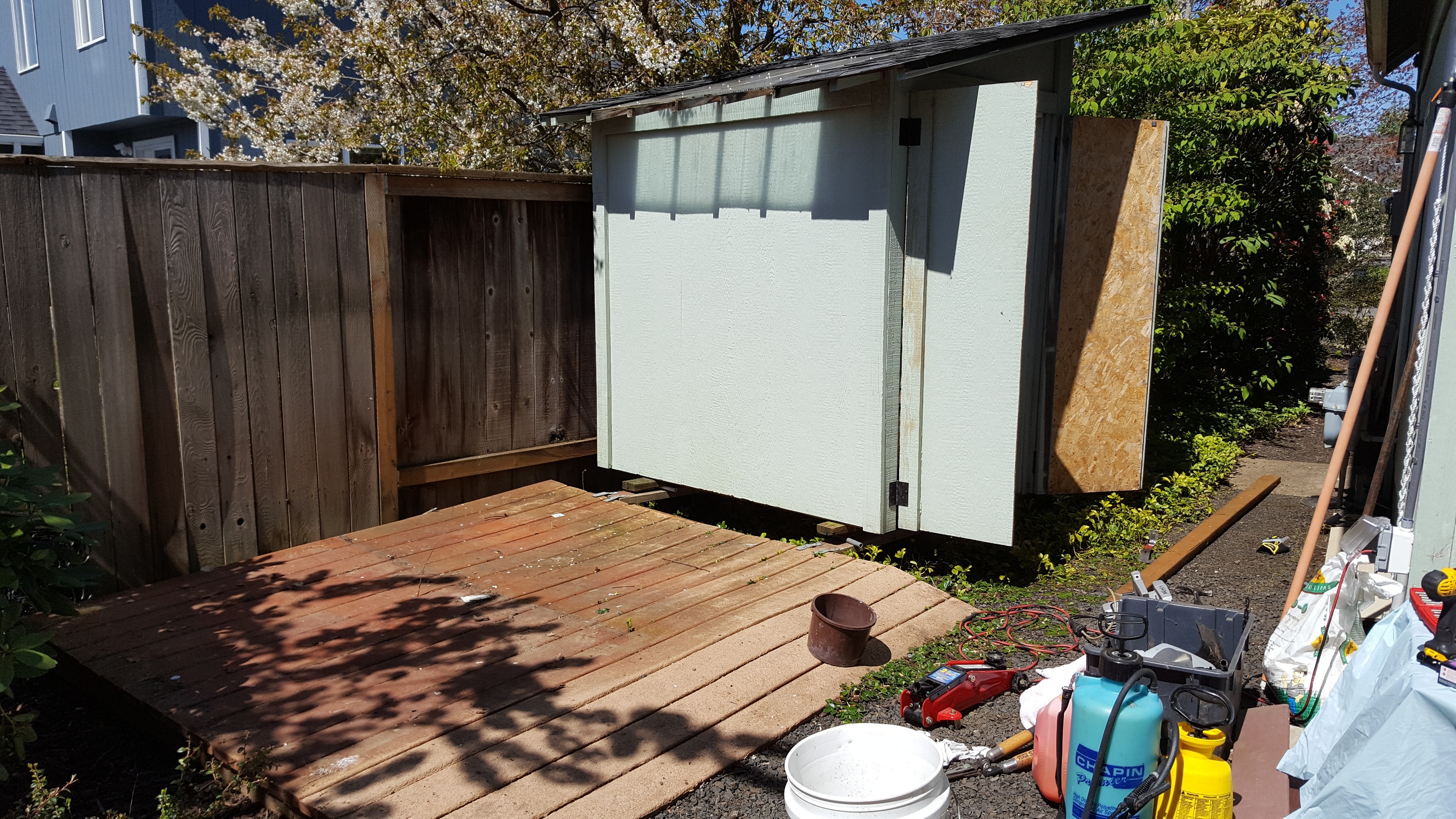 This project involved taking moving an already esisting garden shed off of a deteriorating composite deck and replacing the deck with