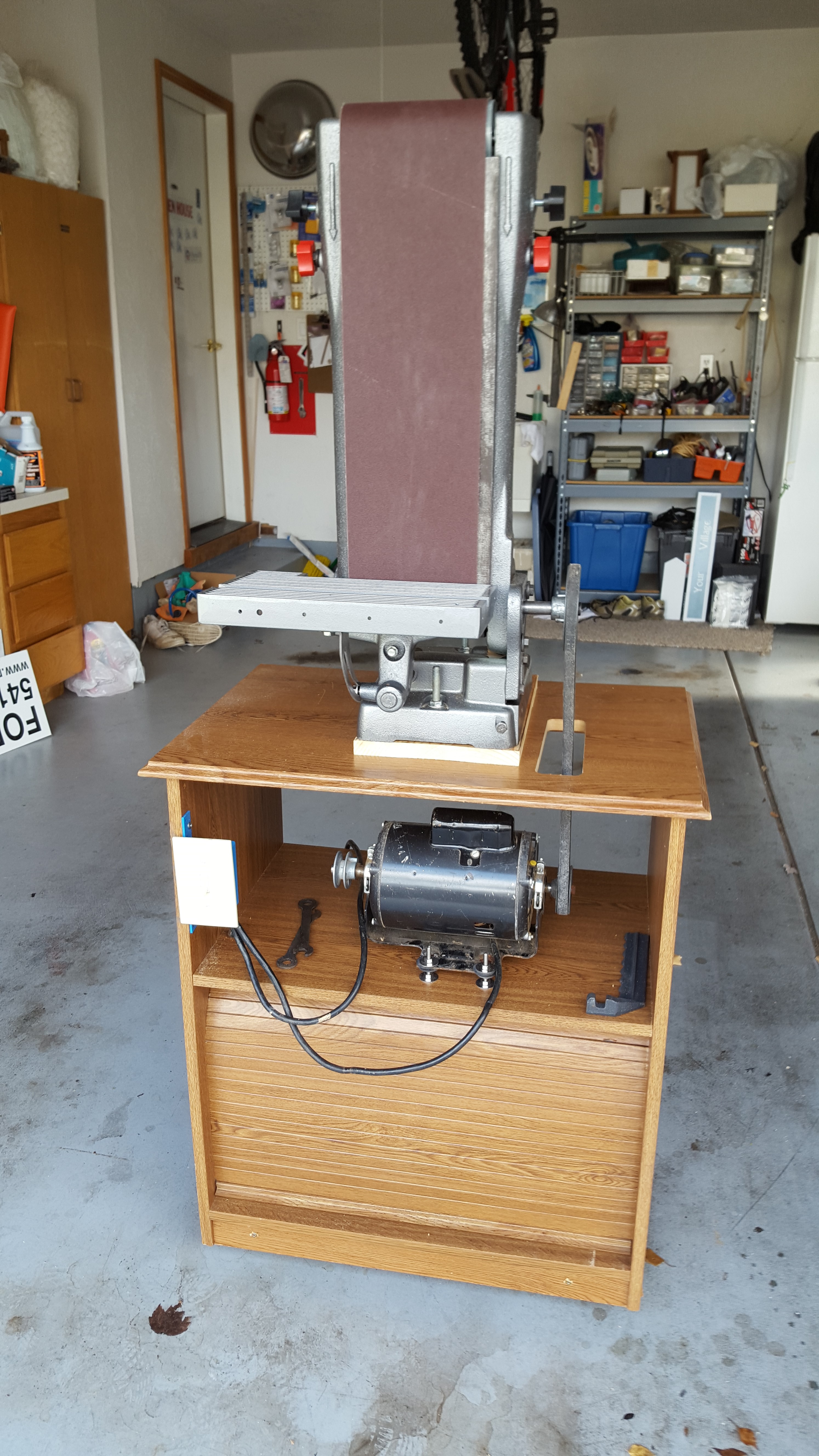 I had loaned the tool to my then son-in-law who apparently did not value it to the extent I did. I found it outside in the rain at my daughter's home. The rain had rusted the metal components and caused the particleboard cabinet to delaminate. I found a used TV stand at a used furniture store then disassembled all the metal parts, removed the rust with Naval Jelly, then repainted and reassembled the parts. The motor provides powerfully strong torque handling the heaviest sanding projects far better than the cheap sander I purchsed new from Home Depot. The sander now resides in my 'new' son-in-law's shop.