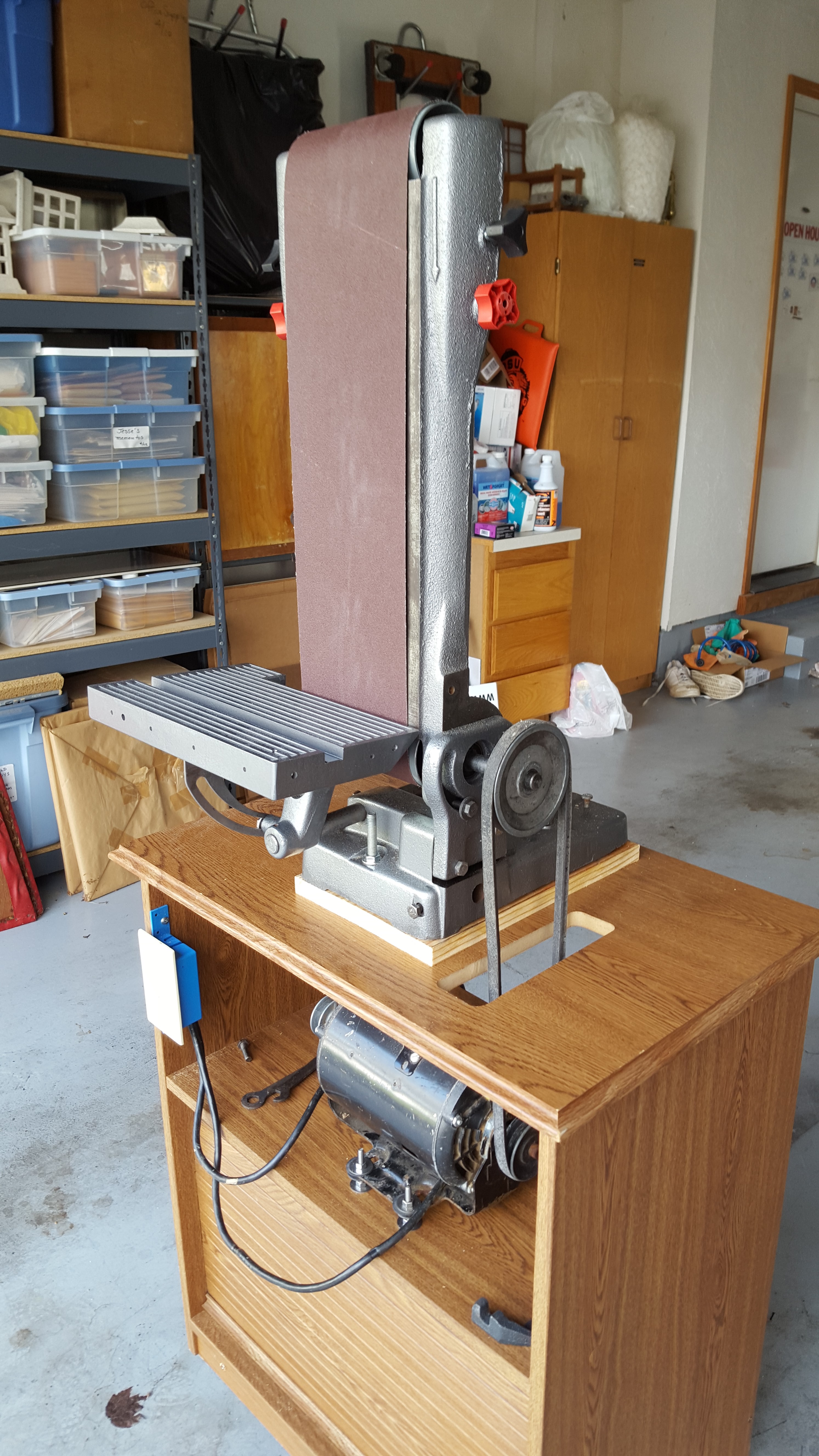 This project caused me a bit of anger; This was a vintage Craftsman belt sander I purchased used at a garage sale. The previous owner had mounted it on a