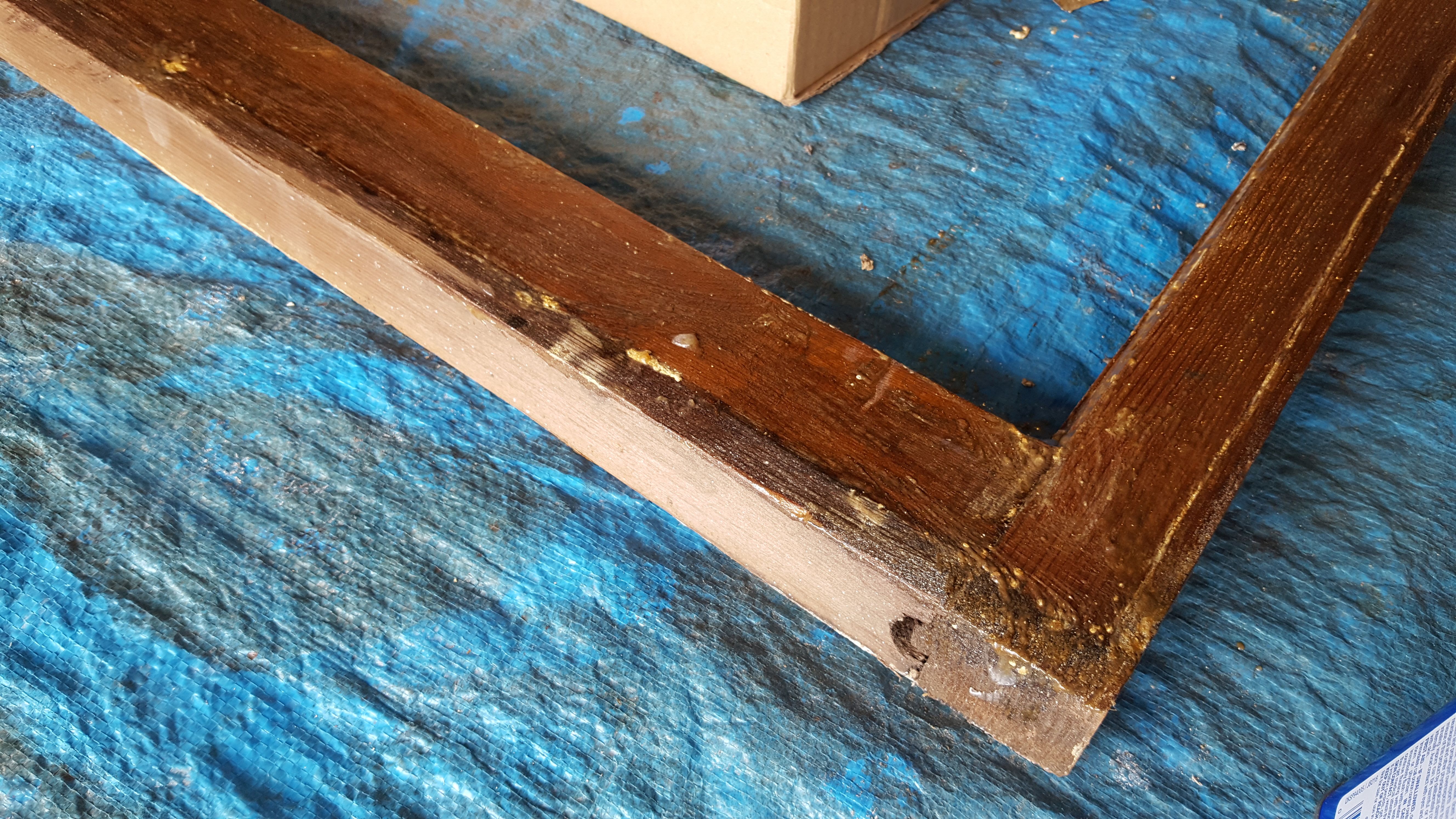 sheetrock and were discovered at the time of demolition. One window was badly damaged and both had decades of several layers